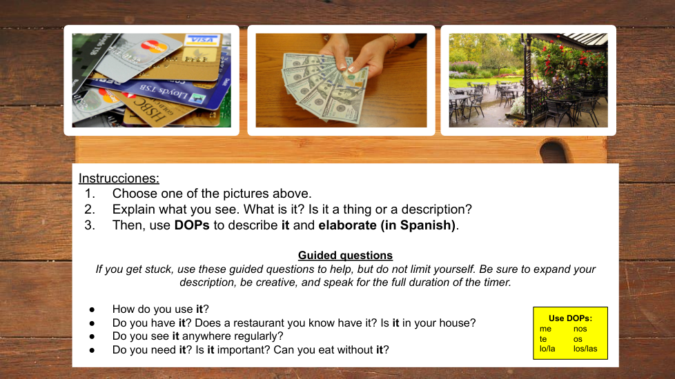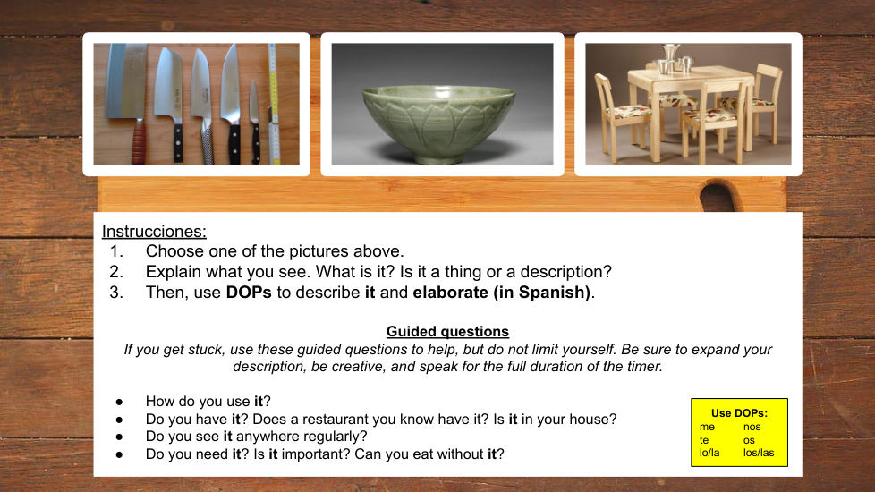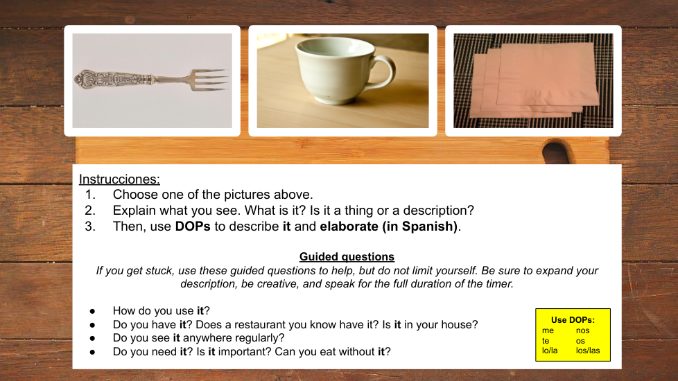 Spanish IV DOP Speaking TLU Assessment