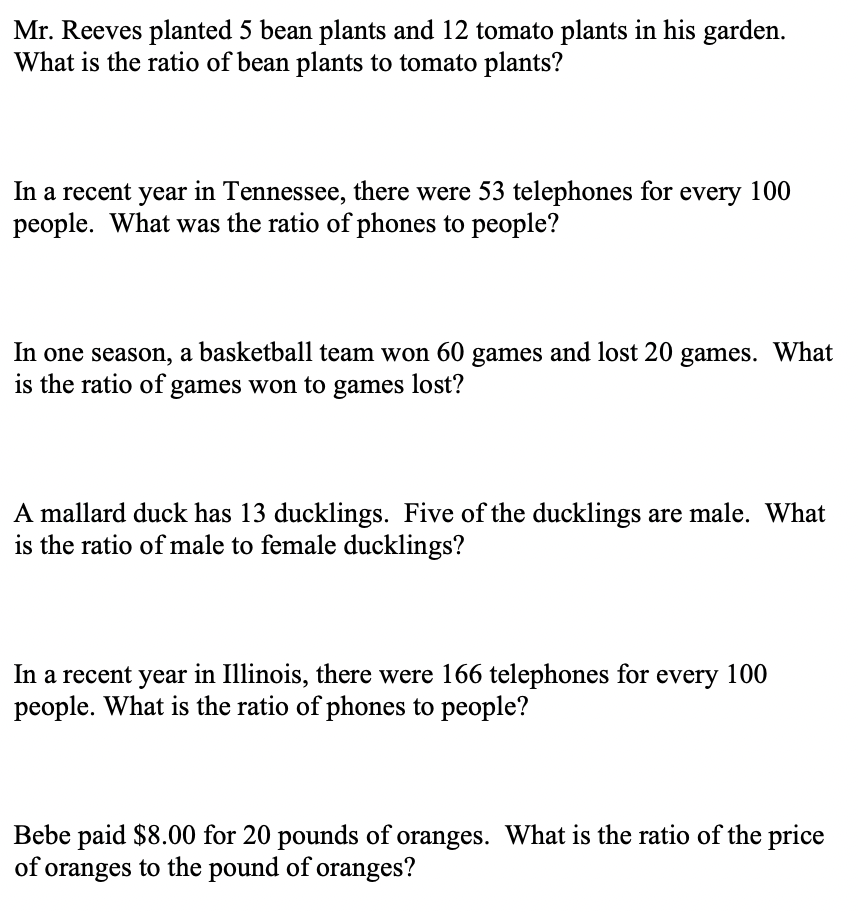 Ratios Part to part