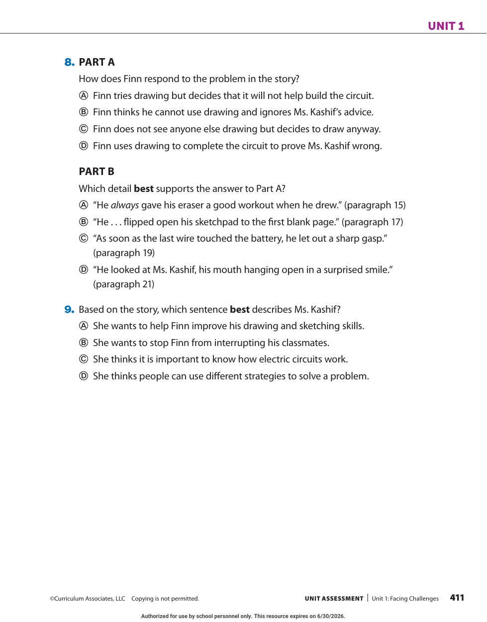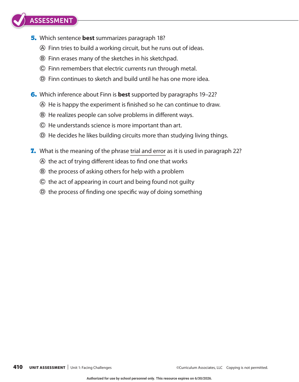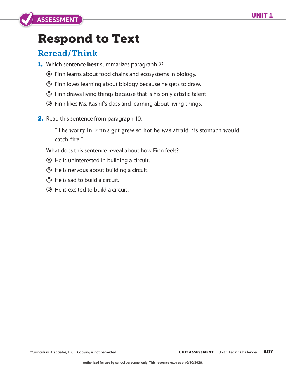 4th grade iReady Magnetic Reading Unit 1 Assessment