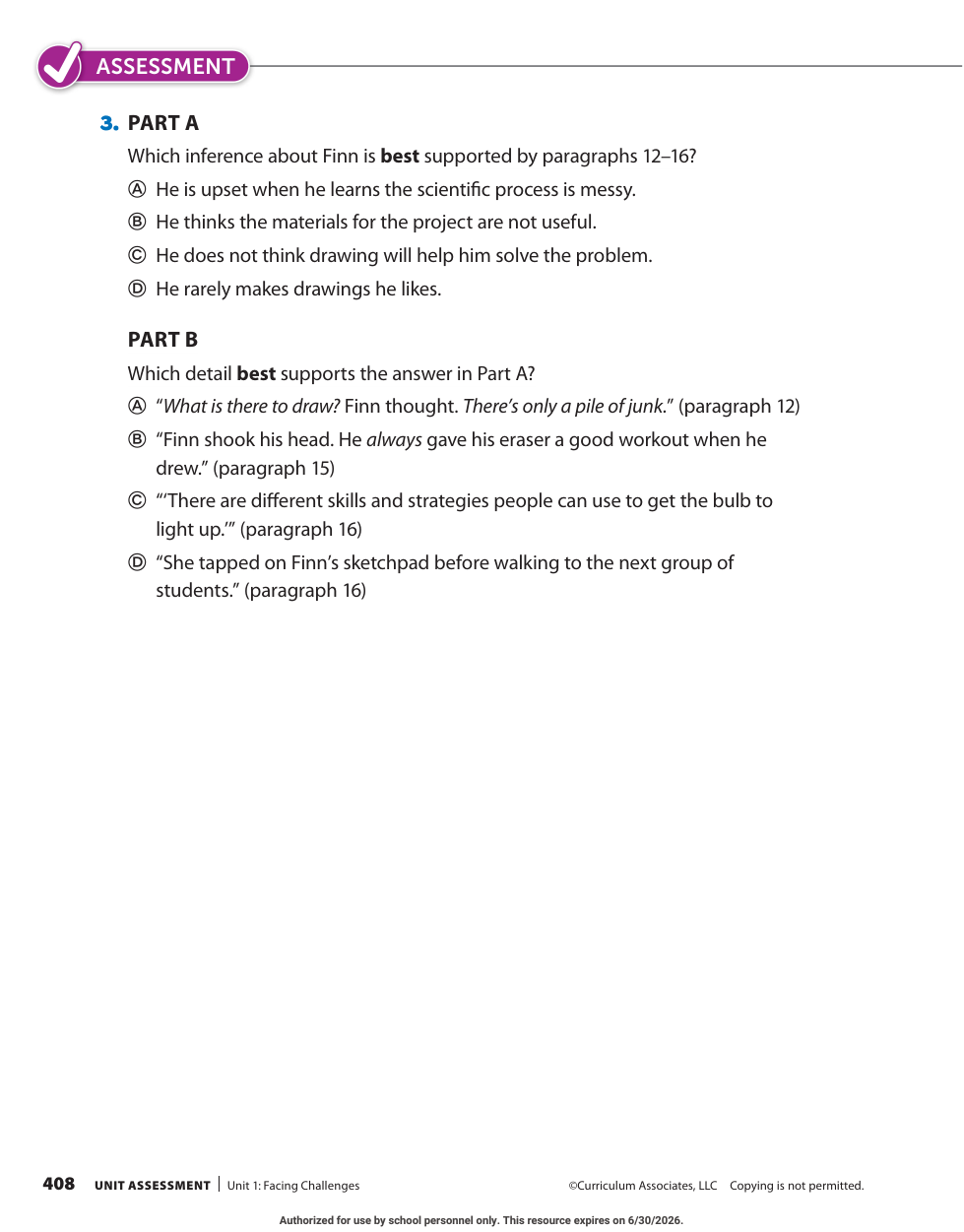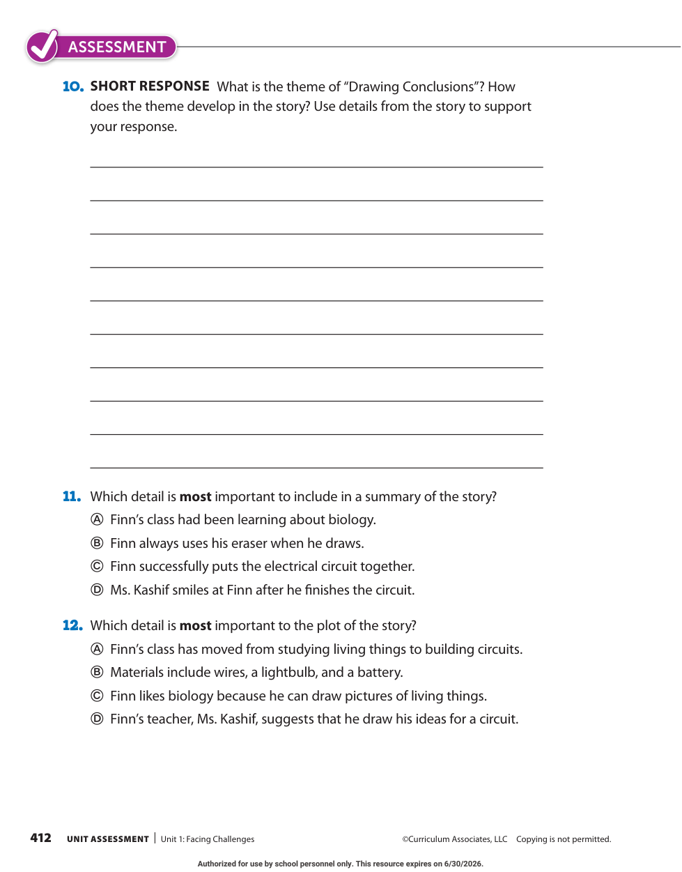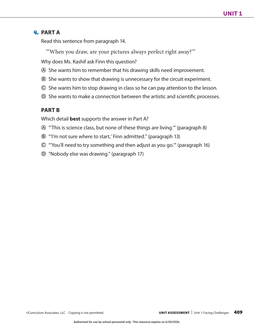 4th grade iReady Magnetic Reading Unit 1 Assessment