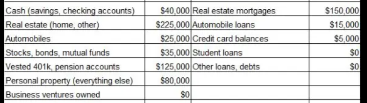 The items on the left are the assets and the items on the right are liabilities. What is this person's net worth?
