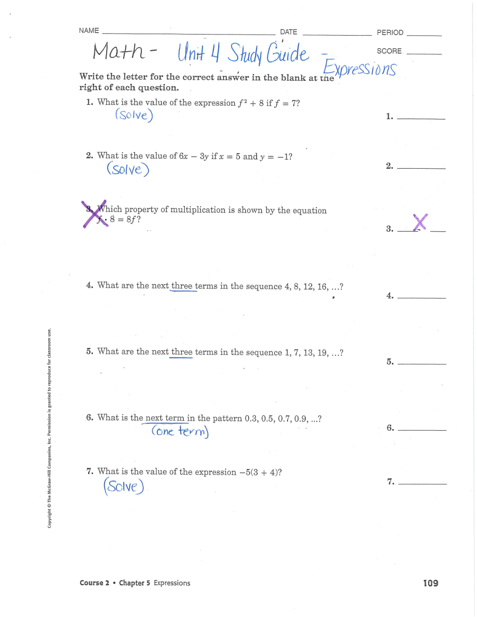 Unit 4 Study Guide - Expressions