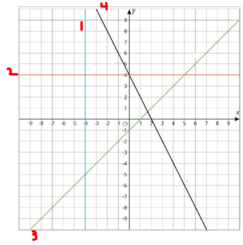 Which of the following graphs represents the linear equation y = -2x + 4?