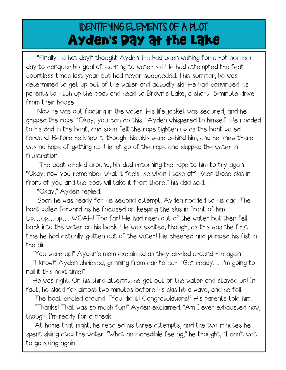 Plot- Ayden's Day at the Lake