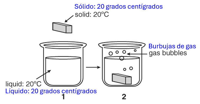 A student placed a solid in a liquid, which produced the results shown in the following diagram.