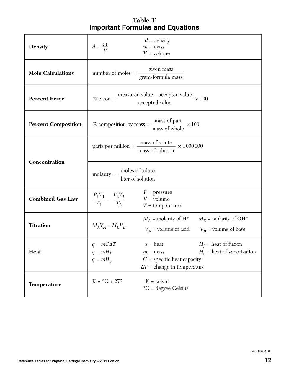 Directions (31-50): For each statement or question, choose the word or expression that, of those given, best completes the statement or answers the question. Some questions may require the use of the 2011 Edition Reference Tables for Physical Setting/Chemistry.