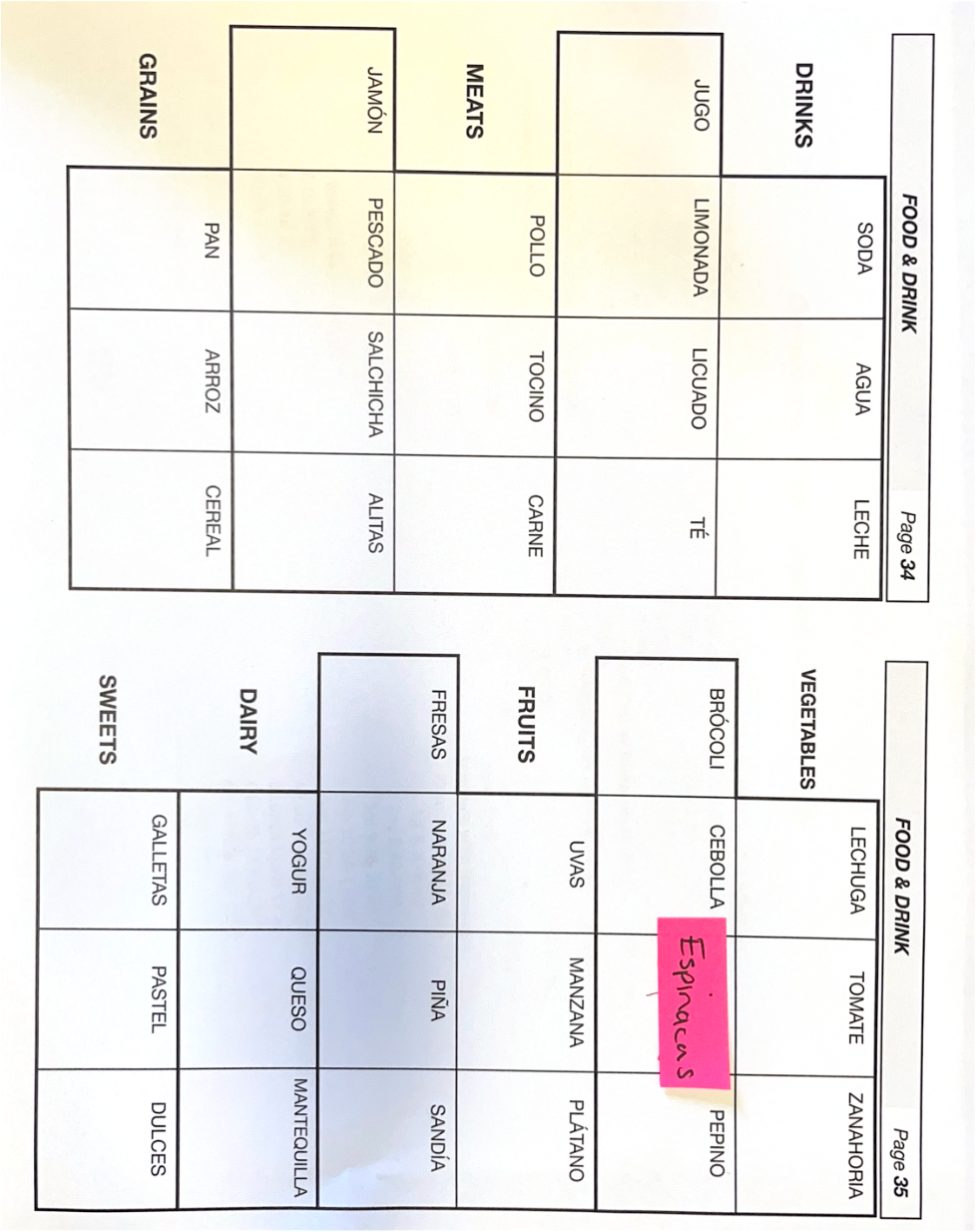 Which term refers to vegetables in Spanish?