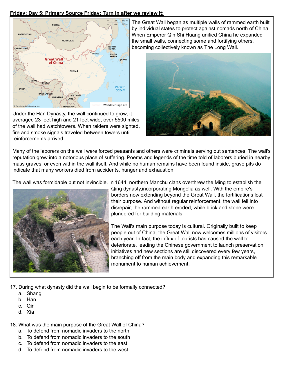 Bell Work Week 17
