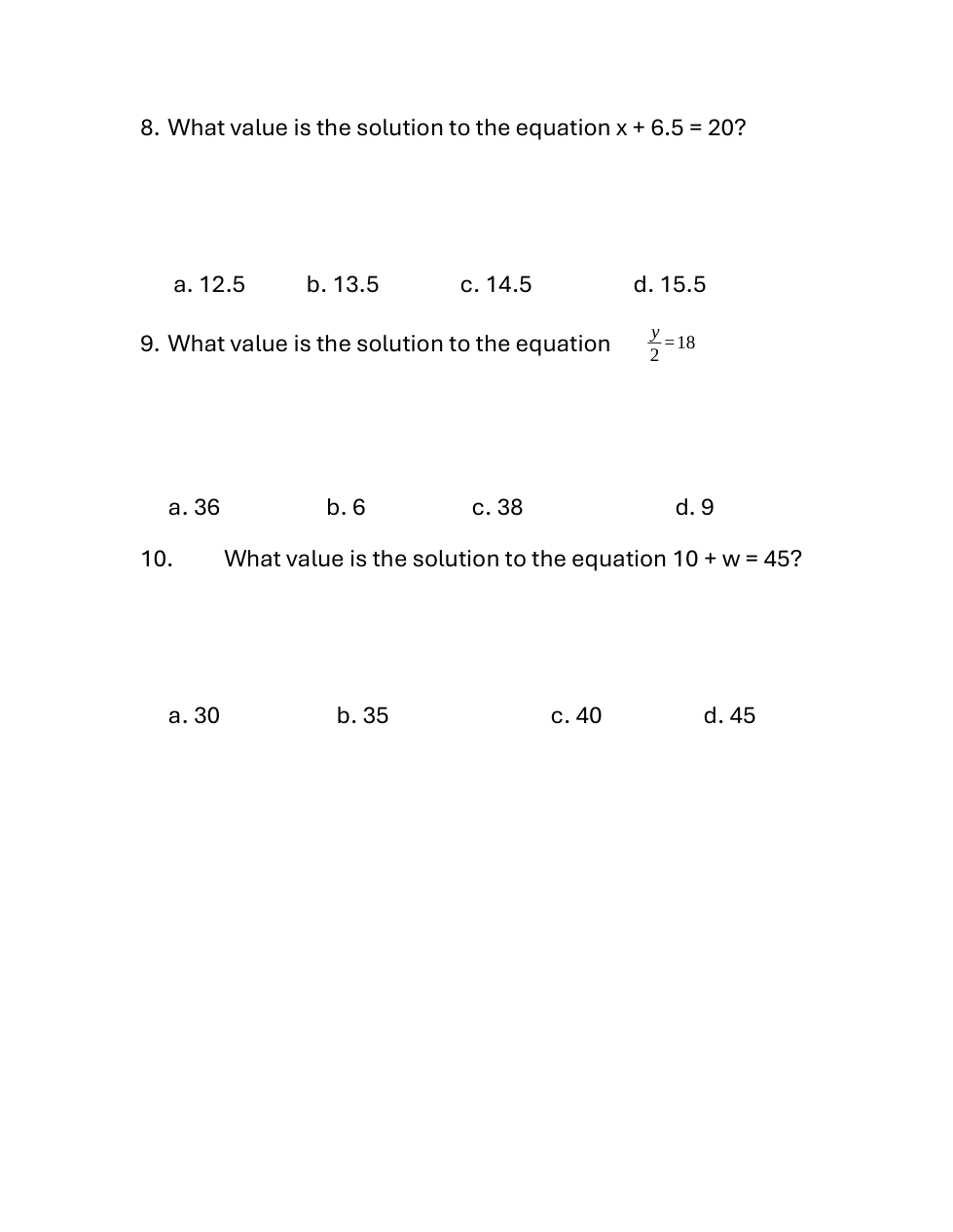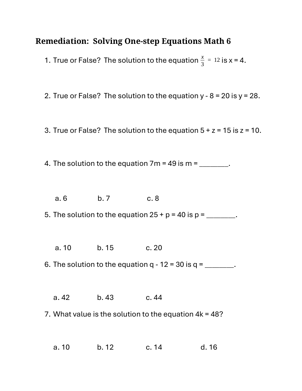 Remediation for Math 6 Solving One-Step Equations Formative