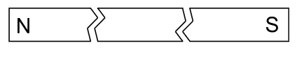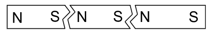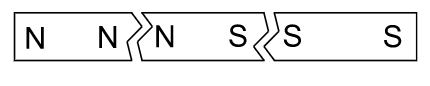 Si on brise cet aimant en trois parties, laquelle des figures ci-dessous représente correctement les pôles magnétiques de chaque partie ?