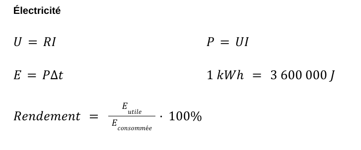 26. Vous utilisez un sèche-cheveux pendant 4 minutes. Sachant que cet appareil offre une résistance de 12 Ω et qu’il a besoin d’un courant de 10 A, quelle serait sa consommation en kilowattheure? Faites votre démarche dans le cahier de réponses.