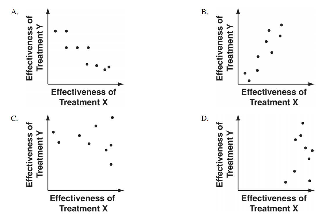 While studying medical treatments, scientists noticed a relationship between two of the treatments when applied together. As Treatment X became more effective, Treatment Y became less effective.