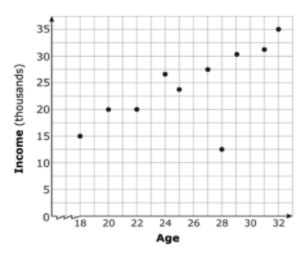 The scatter plot below shows the average yearly income based on age.