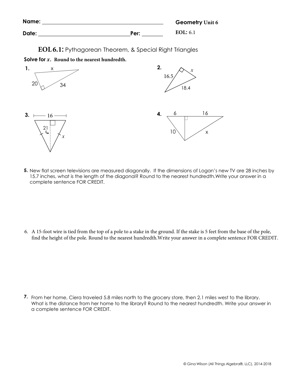ONLY submit work and answers for each individual problem. SHOW YOUR WORK for how your got your answers for full credit.