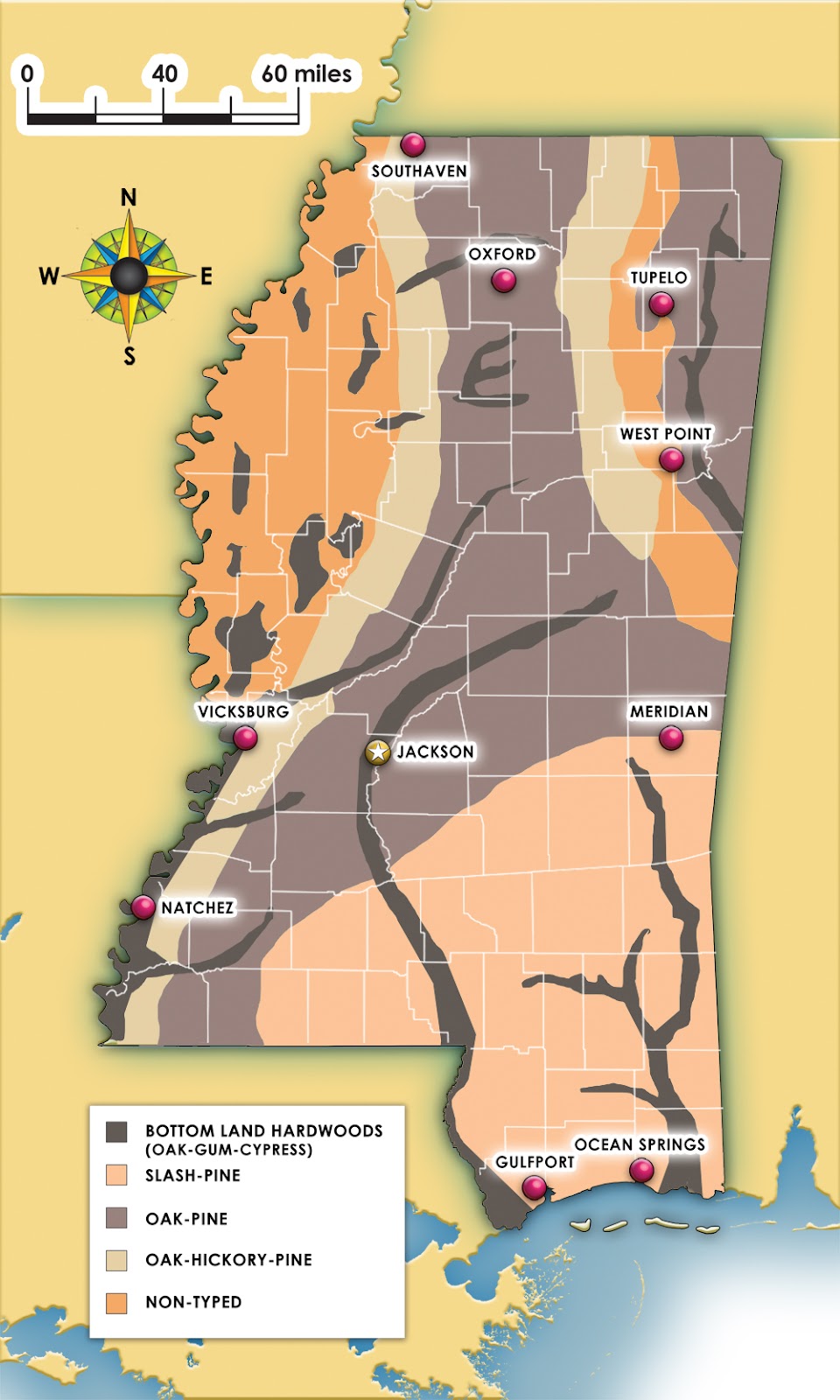 Which type of tree is mostly found in Oxford, MS?
