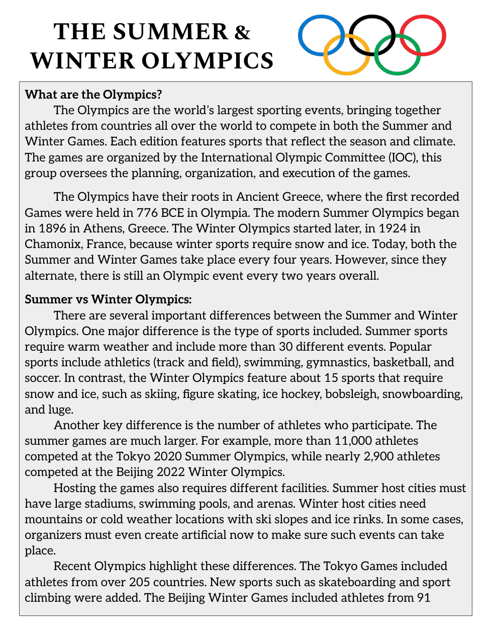 Summer and Winter Olympics