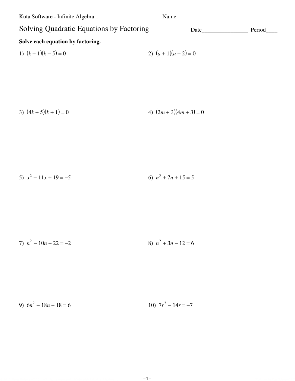 Solving Quadratic Equations by Factoring