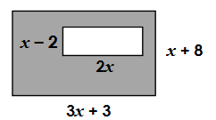 Given the diagram below, if the area of the shaded region is 290 ft² , what are the dimensions of the inside rectangle?