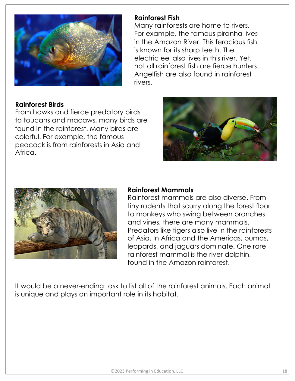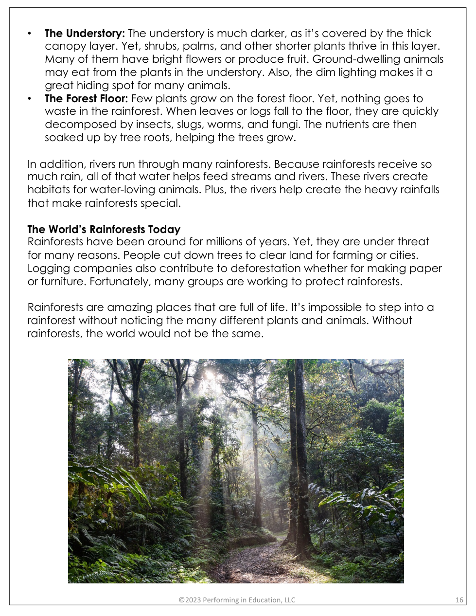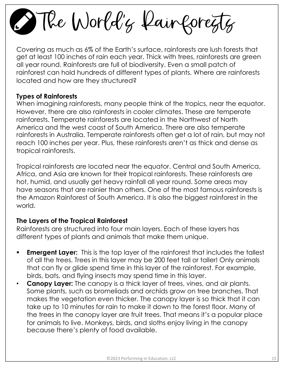 "The World's Rainforests" Reading Questions