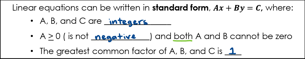 In Ax+By=C, how must A be chosen?