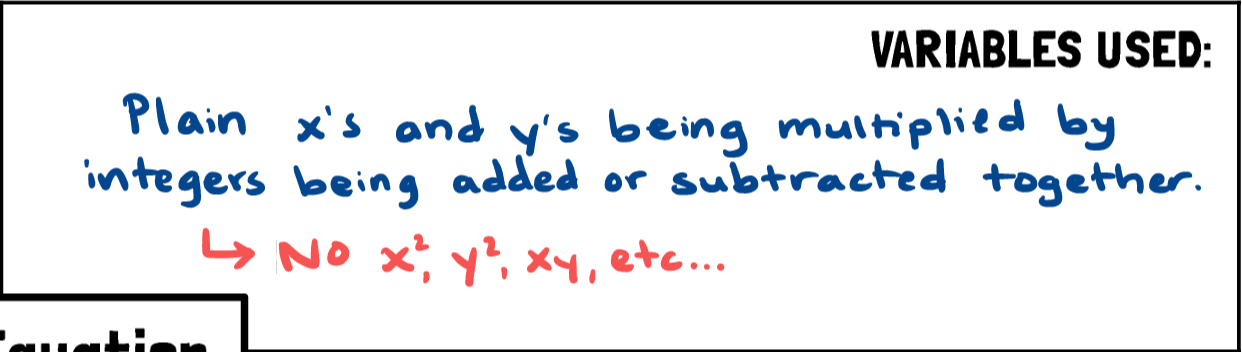 Which term is allowed in a linear equation like those described?
