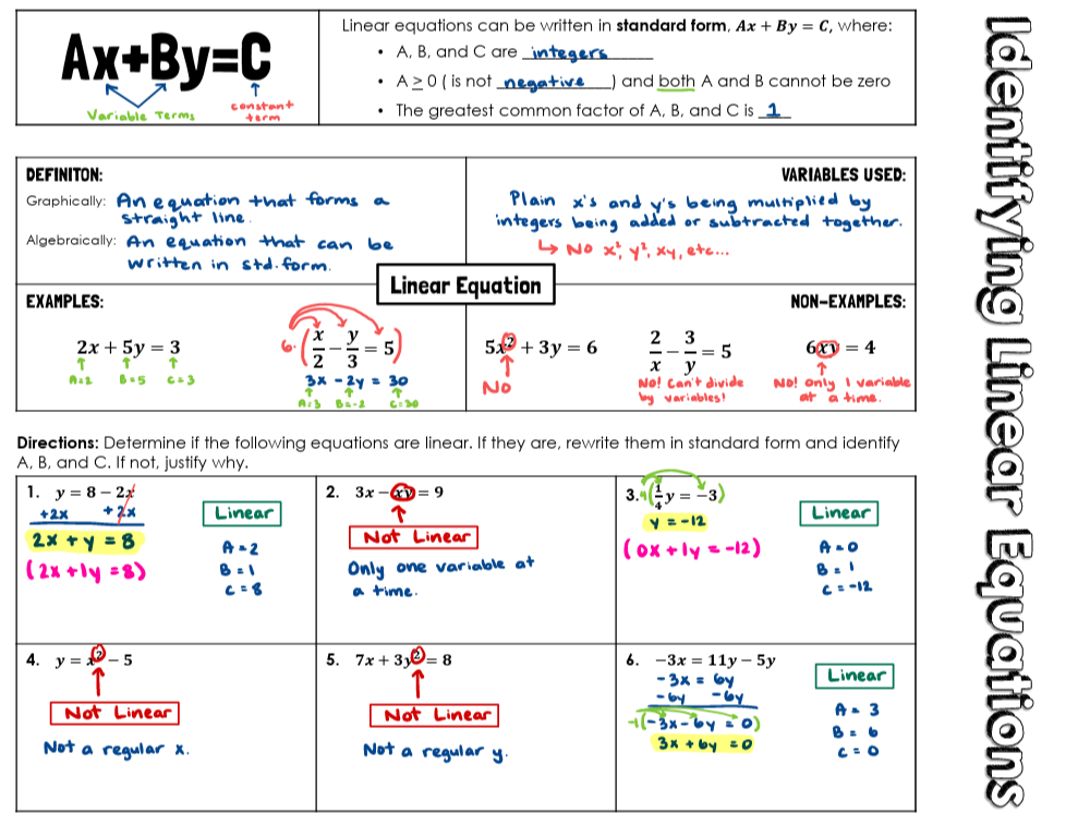 📘 Ch. 5.1 Identifying Linear Equations Notes