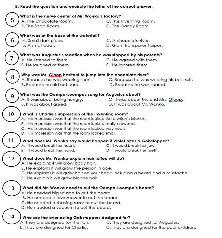 Third Quarter Grade 5 English Test (5C)