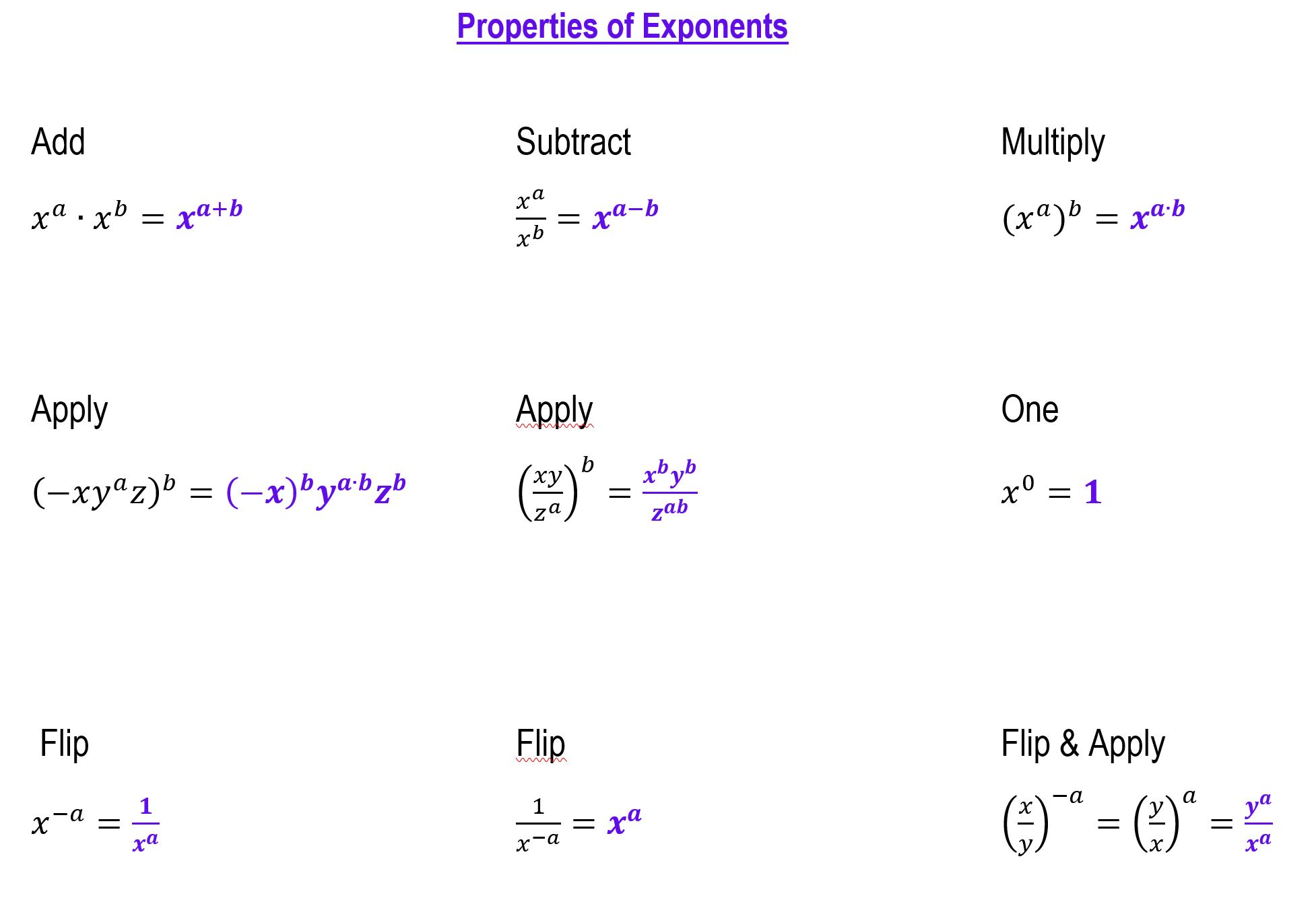 Exponent Properties Review