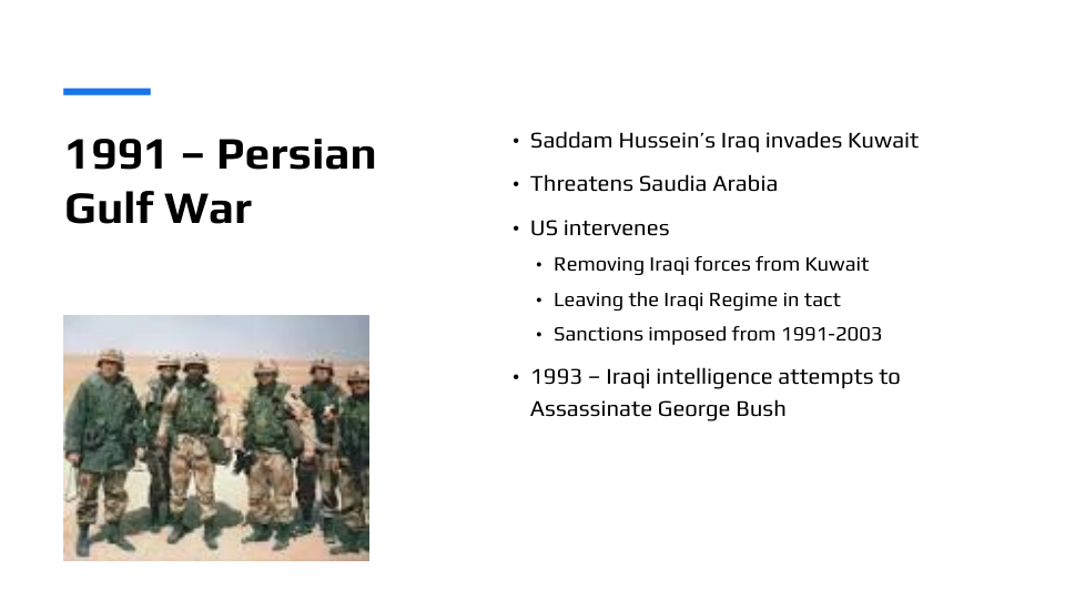 What major action did the US take in the Gulf War?