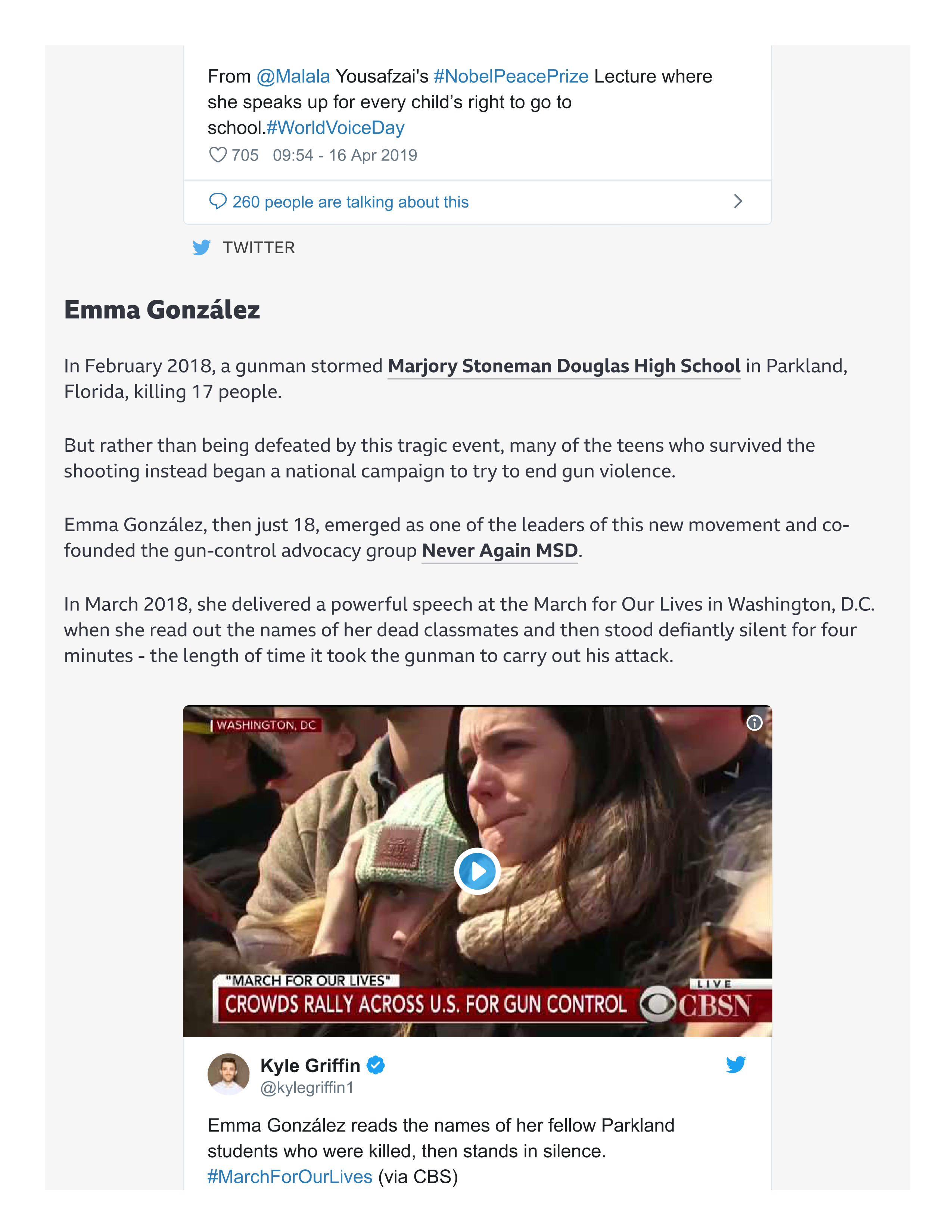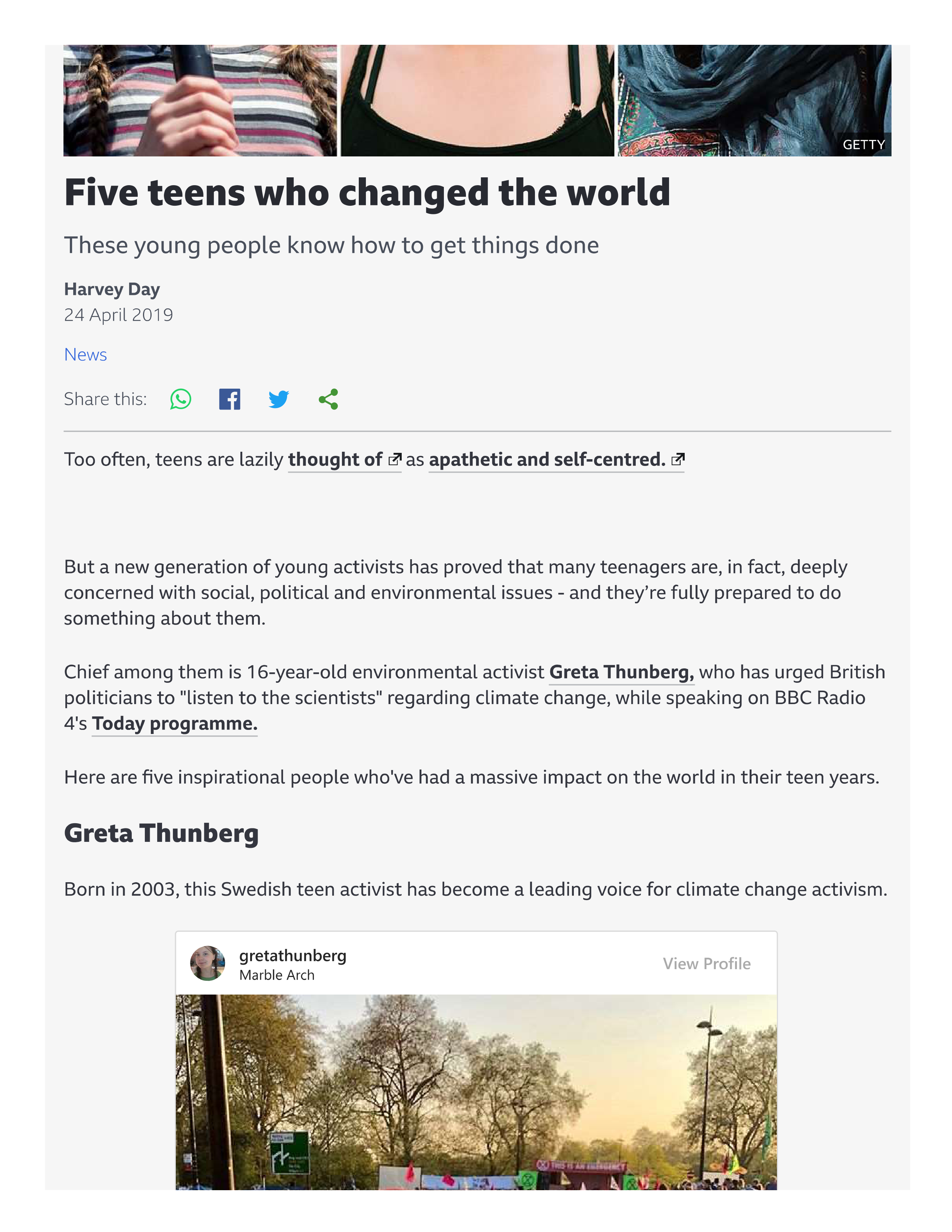 Antes de leer el artículo, ¿ qué ya sabes de estas chicas; Greta Thunberg, Malala Yousafzai, Emma Gonzalez, and Amika George? Contesta en español.