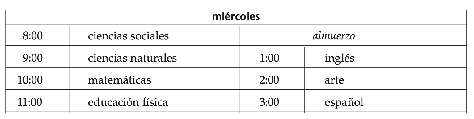 Students will be able to read and answer questions about a school schedule.