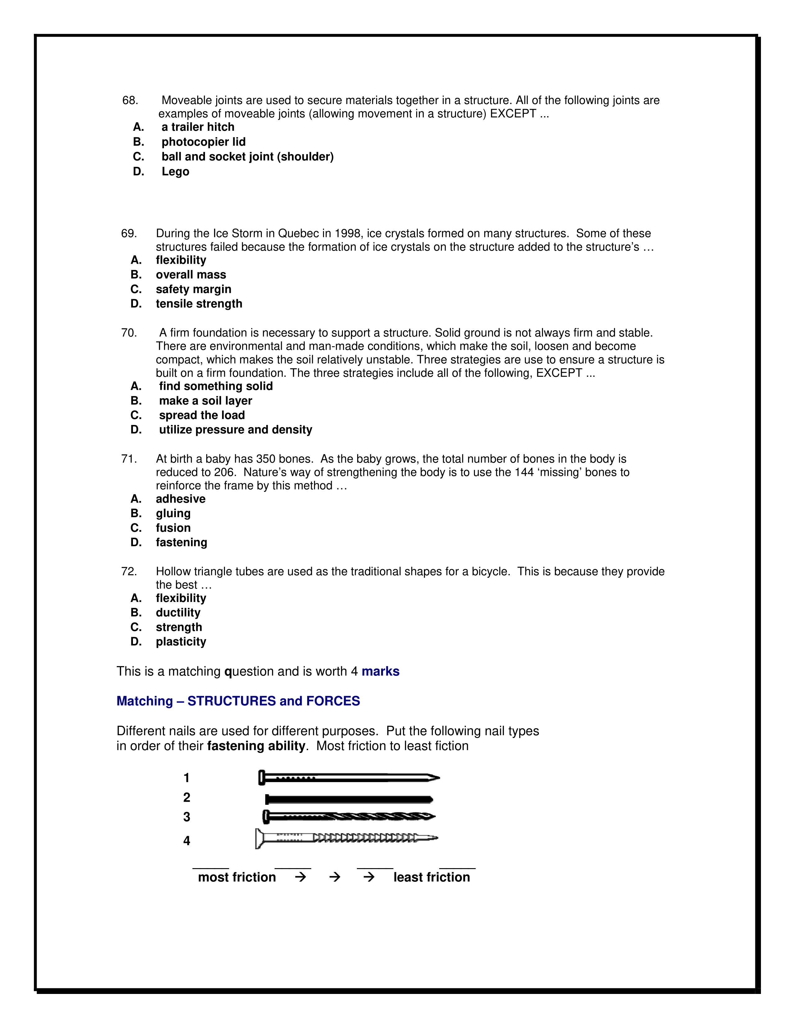 Different nails are used for different purposes. Put the following nail types (from the picture) in order of their fastening ability, from most friction to the least friction.