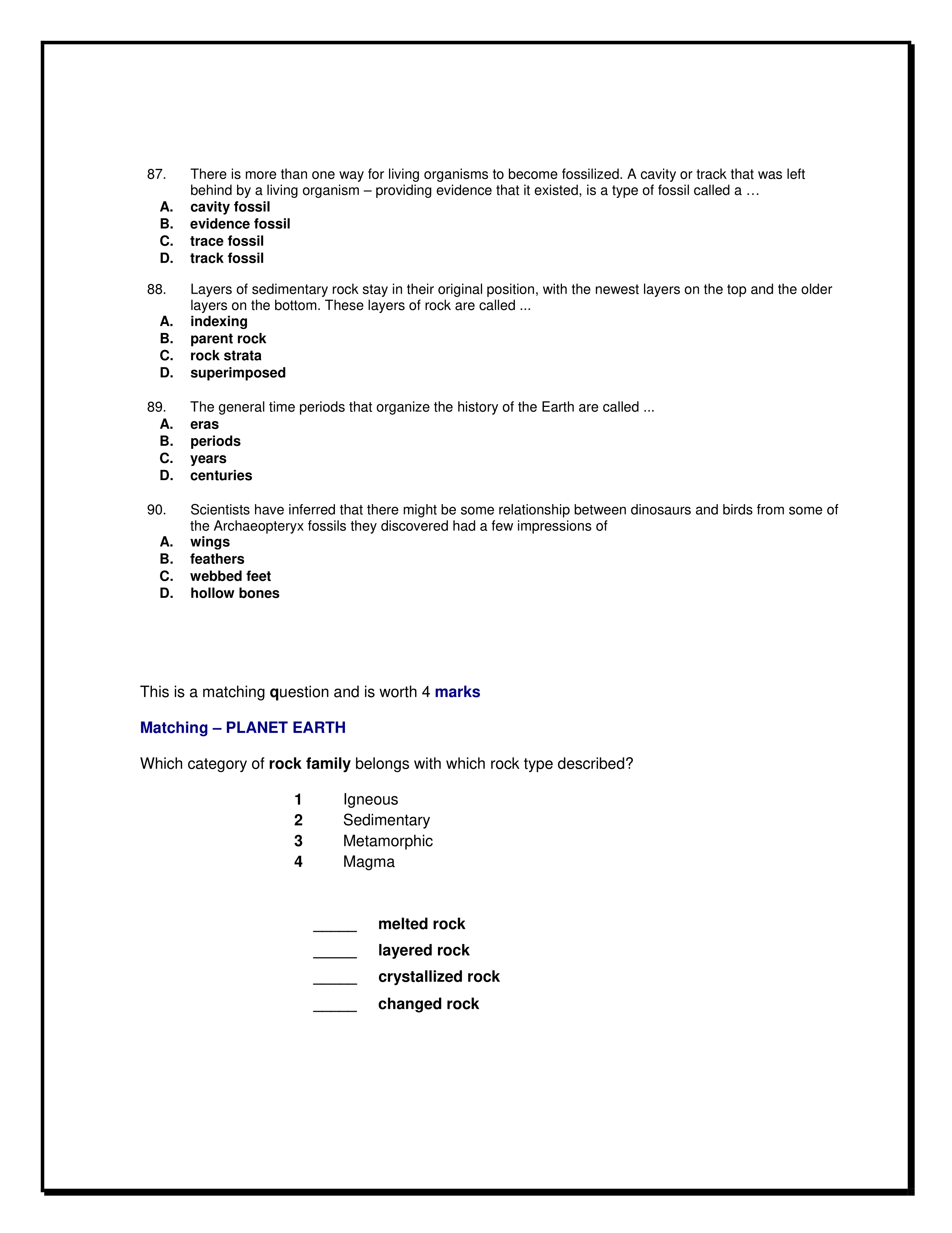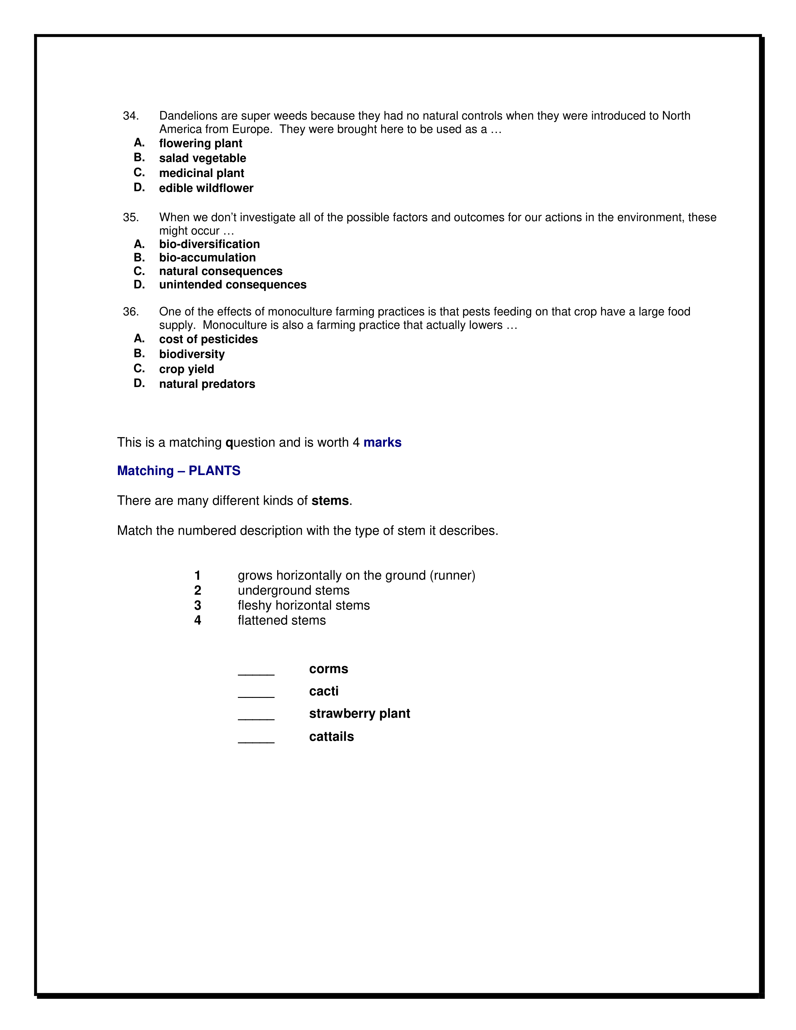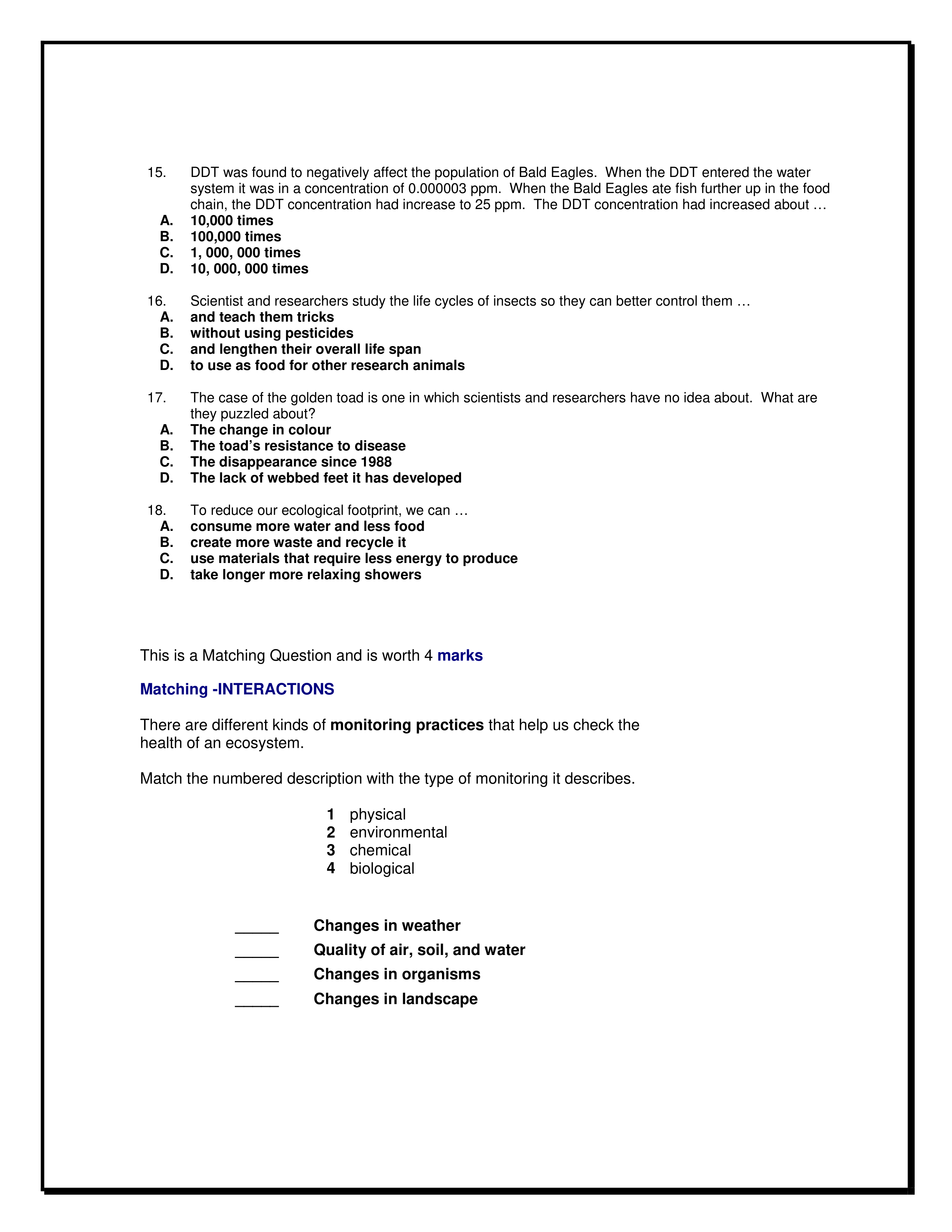 Match the numbered description with the type of monitoring it describes by click and dragging the numbered description onto it's matching defintion.