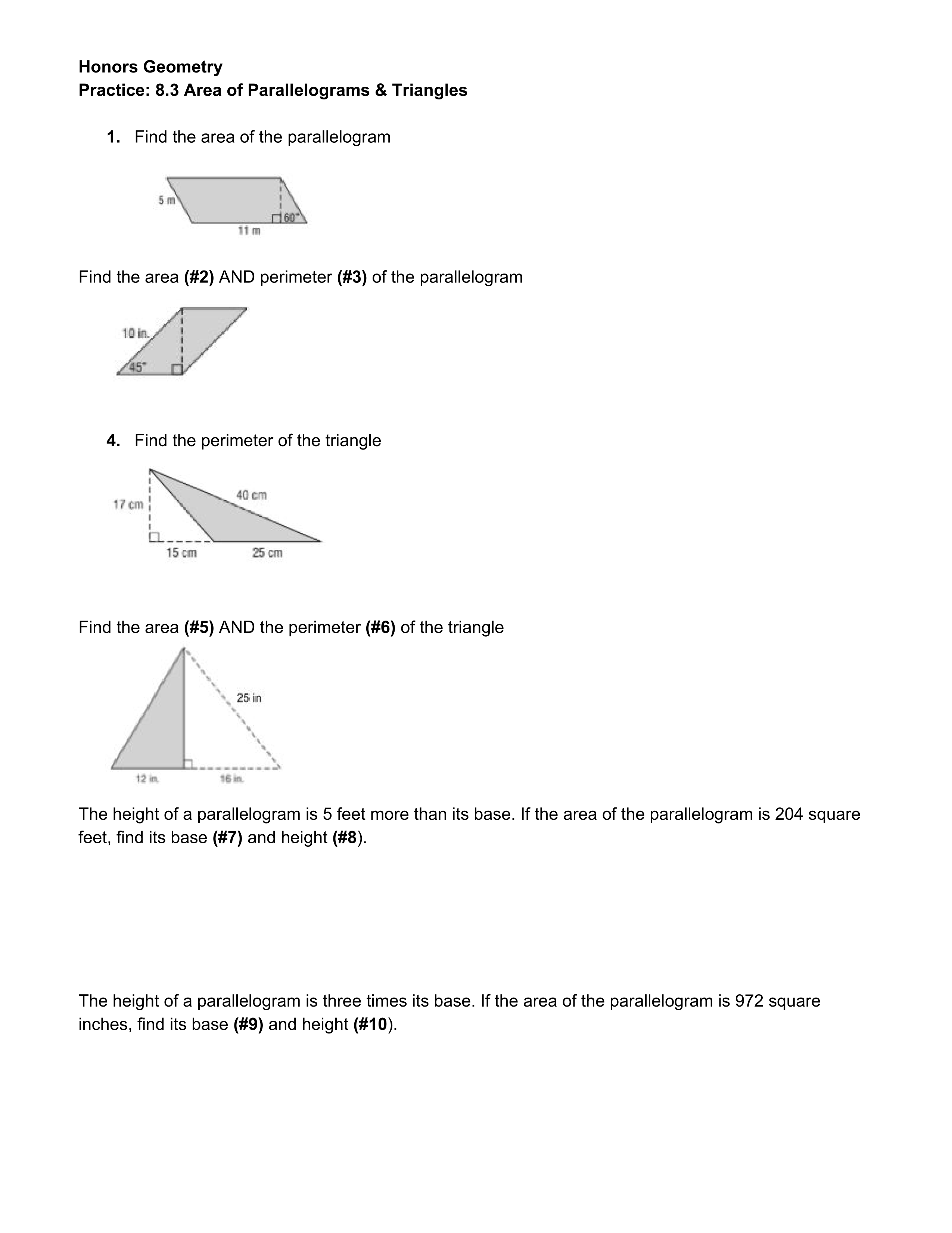 8.3 Area of Parallelograms and Triangles