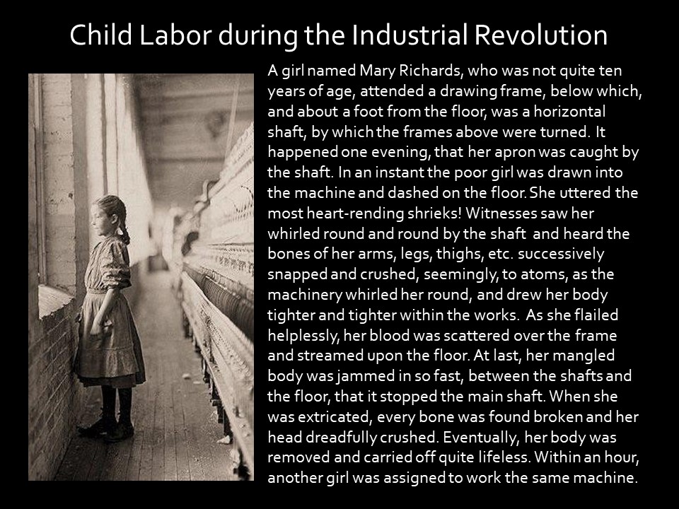Search the Internet for stories about child labor issues during the Industrial Revolution. In your answer below copy the web address/URL of the story and create two short answer questions about the article. You may not use one of the stories from this assignment.