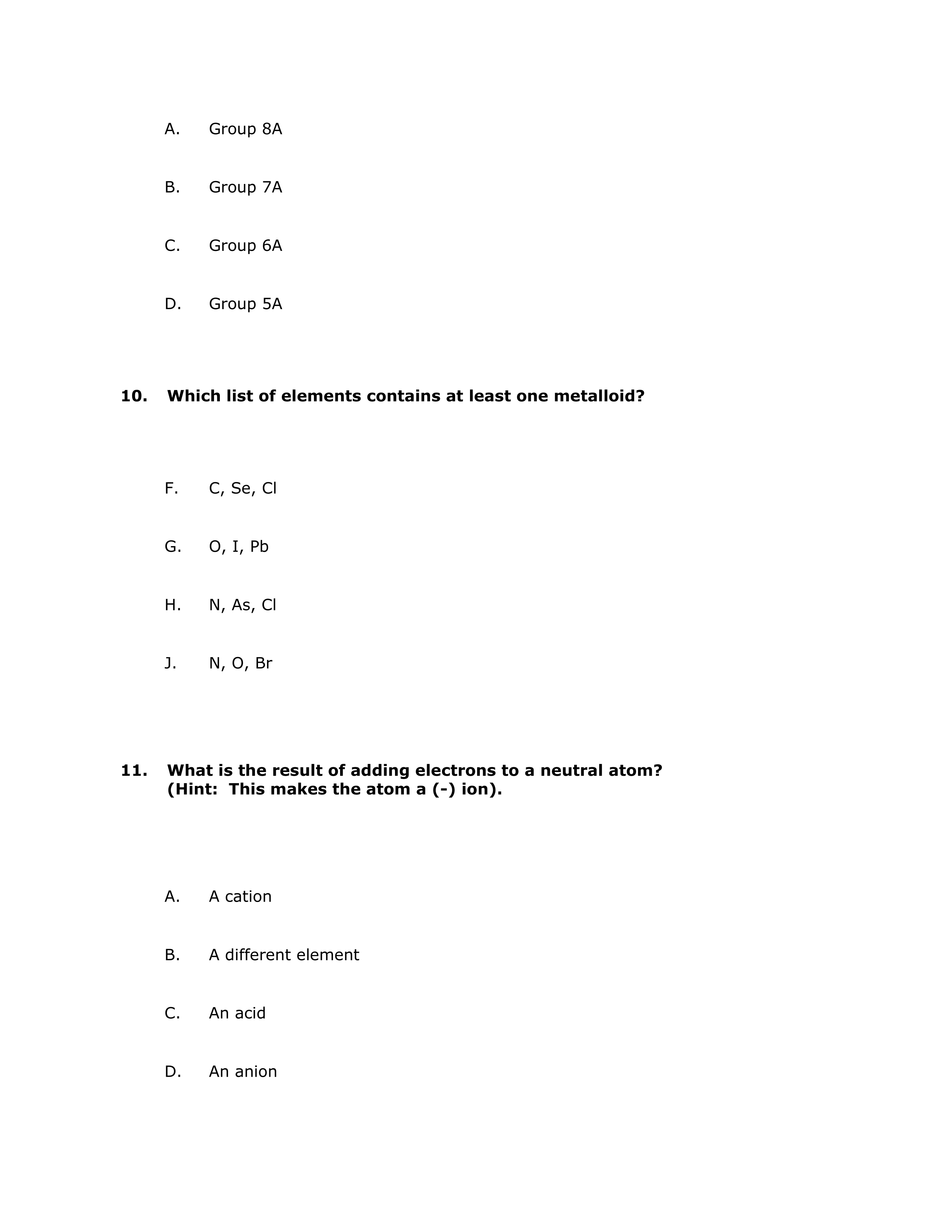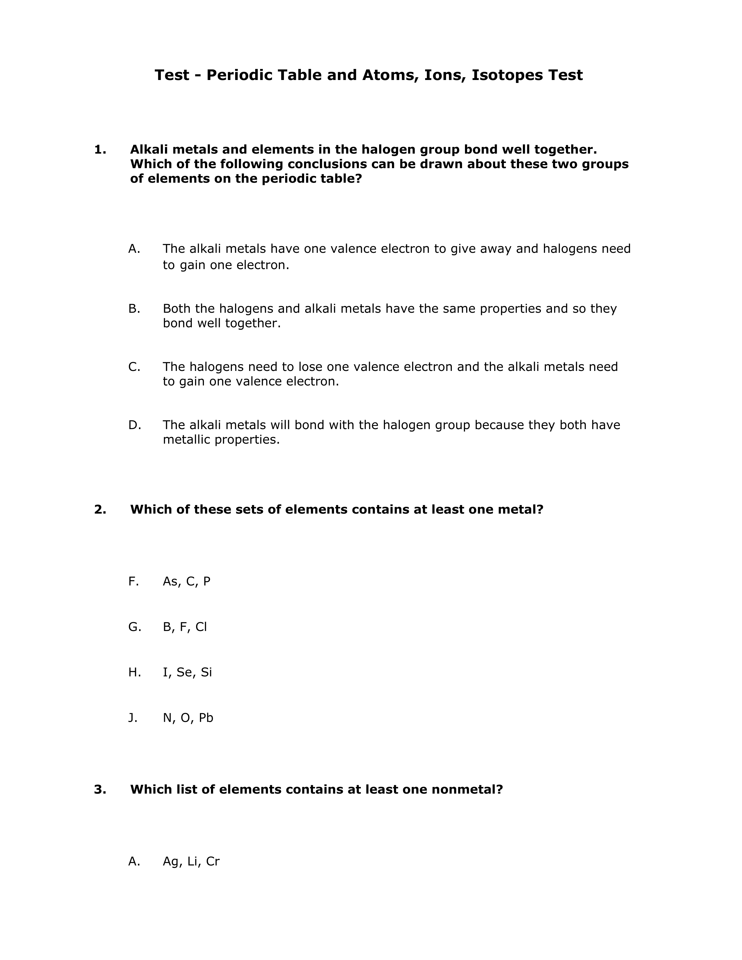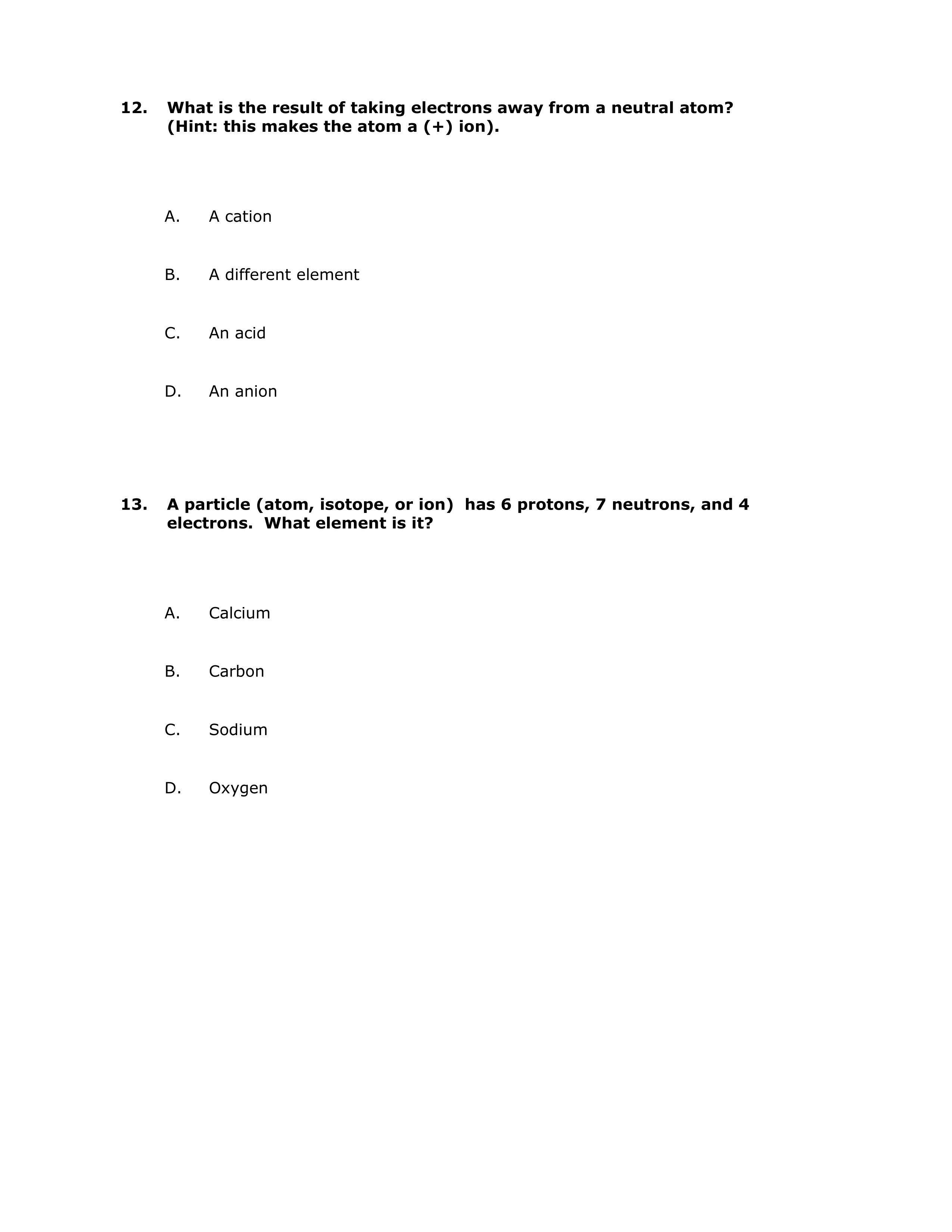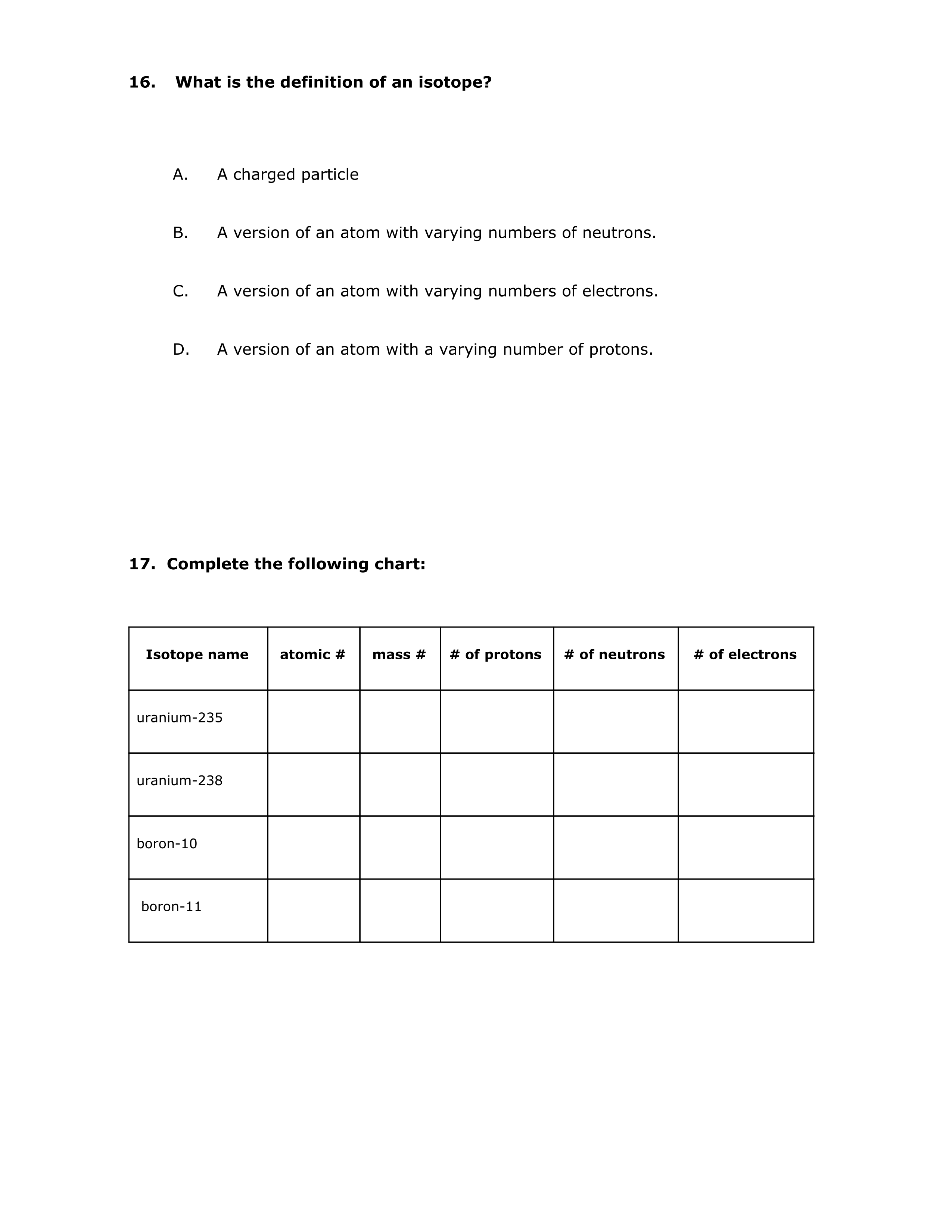 Practice Test: PT, Atoms, Ions, and Isotopes
