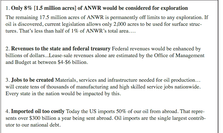 Fourth, explain why this is supports drilling or not drilling in Alaska.