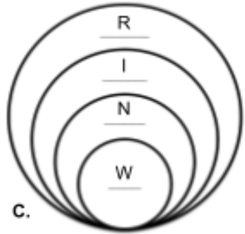 Which Venn Diagram correctly shows the placement of Whole Numbers, Rational Numbers, Integers, and Natural/Counting Numbers?