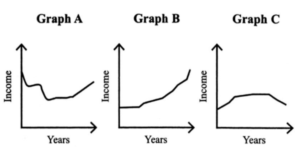 In general, as people get older, their income increases until they retire. Which of the graphs above illustrates this statement?