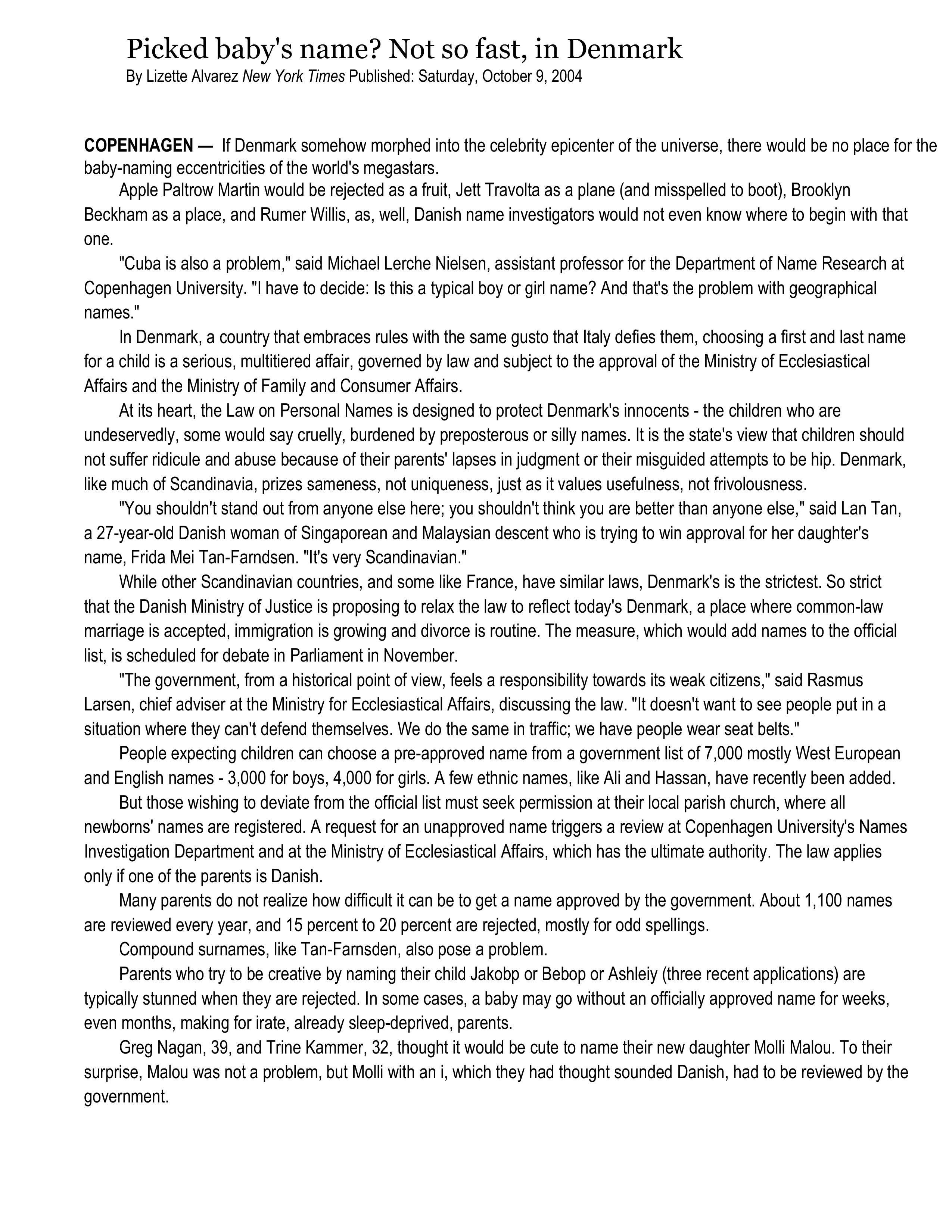 How do you feel about Denmark's law? Should people be able to name their children whatever they want?
