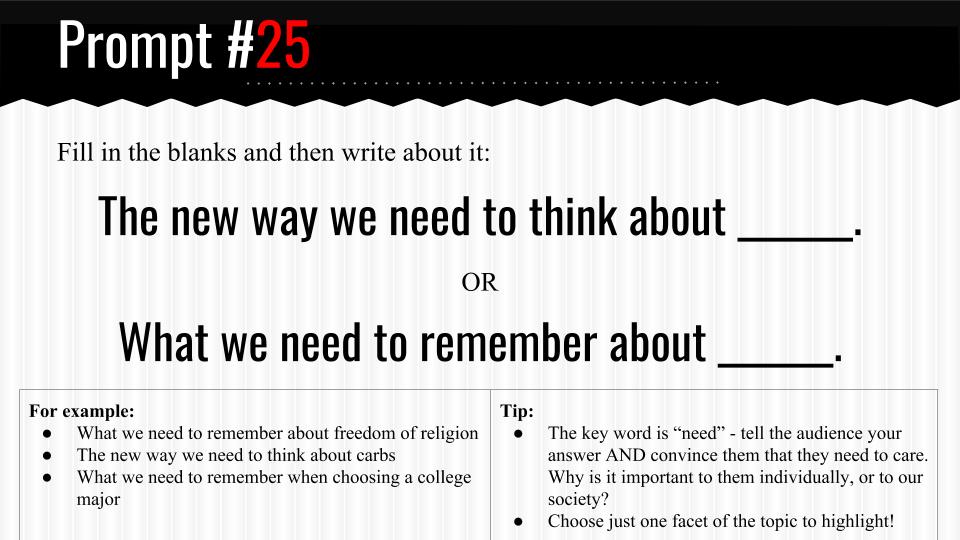 Choose your topic by filling in the blank, then write a SPEECH about your topic. Your speech should include an introduction, body, and conclusion. While writing your speech be sure to include a variety of facts, examples, and/or stories. Make it interesting and fun!