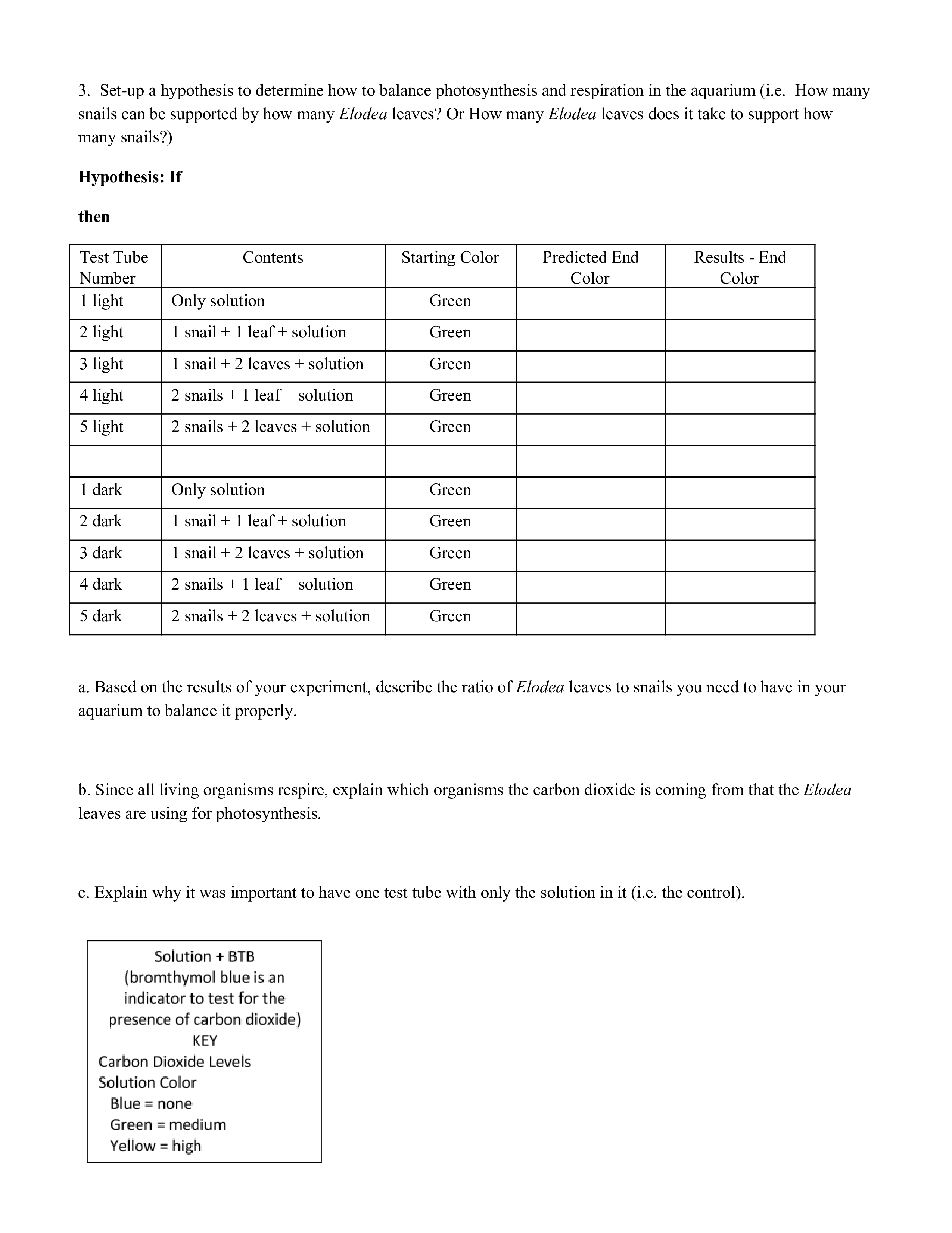 Look at the Key in the Virtual Lab: solution colors can be green (medium amount carbon dioxide), yellow (high level of carbon dioxide), and blue (no carbon dioxide)