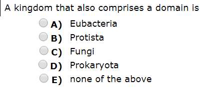 What kingdoms belong to the domain eukarya? Choose all that belong.