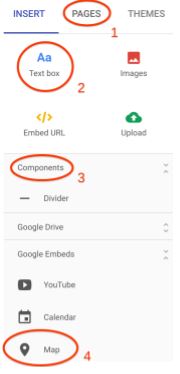 Where would you click in order to embed a Google Map into your Google Site?