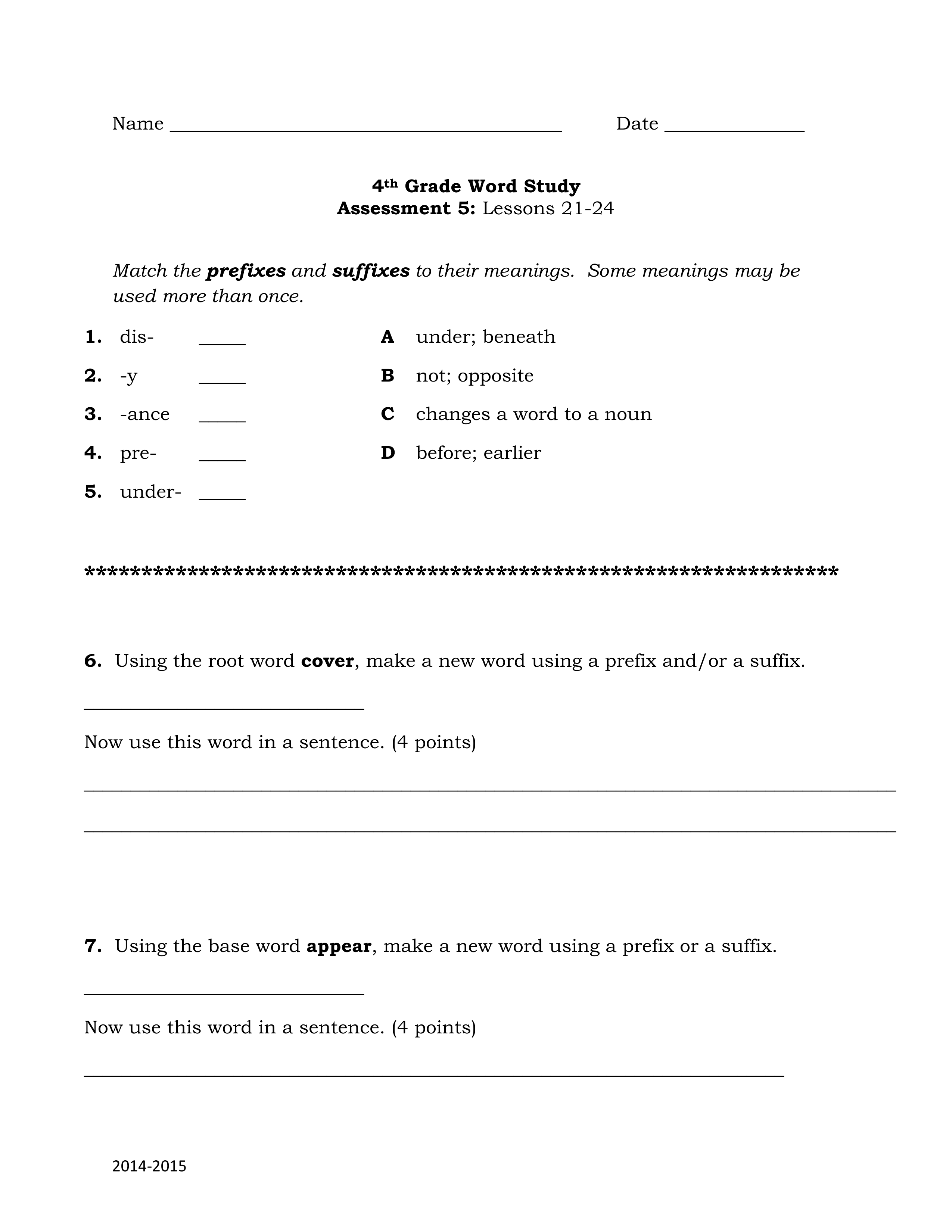 Word Study 5 Assessment