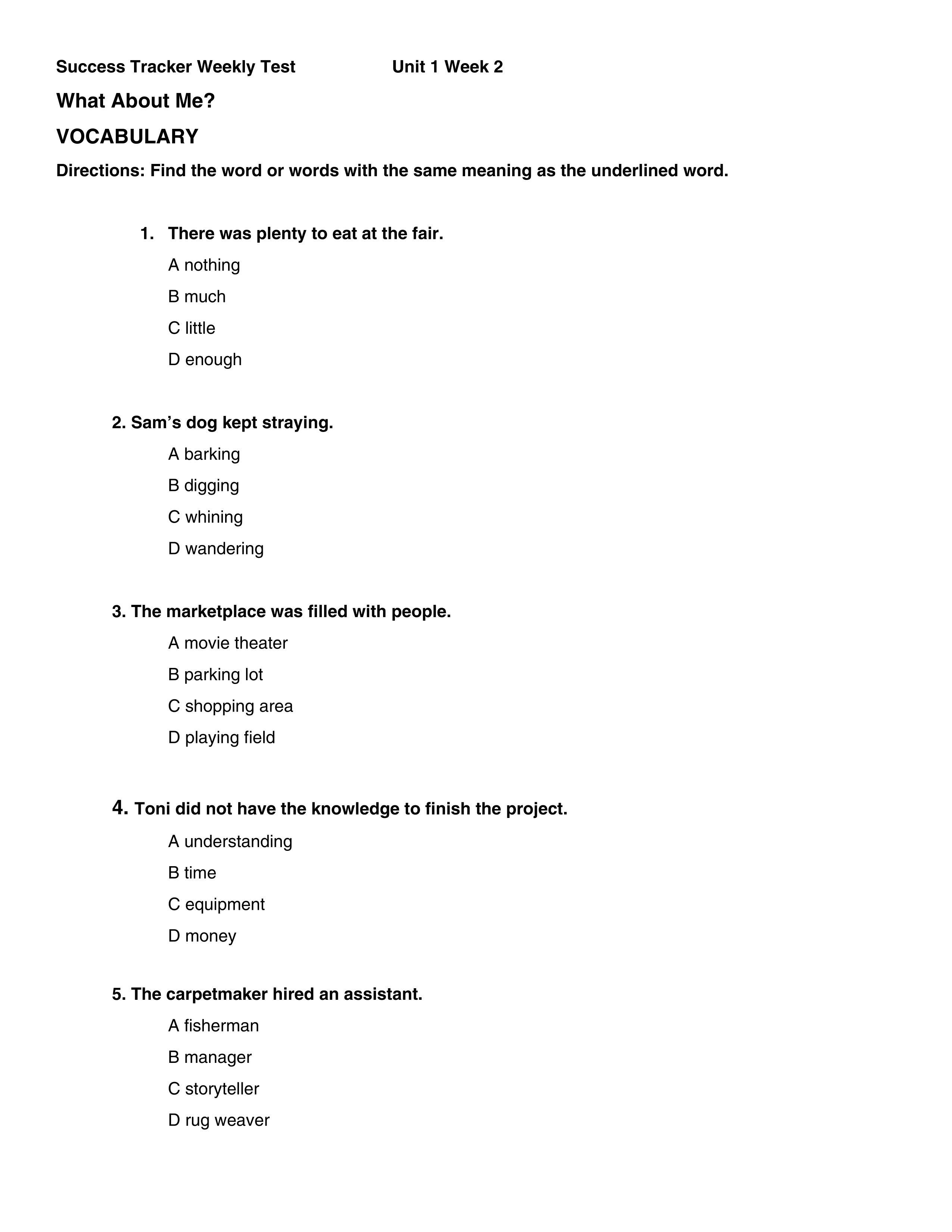 Unit 1 Week 2, What About Me?