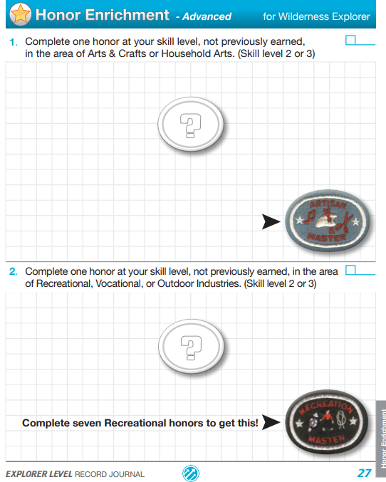 Complete one honor at your skill level, not previously earned, in the area of Arts & Crafts or Household Arts. (Skill level 2 or 3)