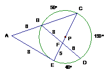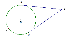 Given: BA and BC are tangent to circle D. The ratio of arc AFC to arc AC 4:1. Find measure of angle B.