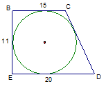 Circle P with a radius 12 cm and Circle Q with a radius of 7 cm. Find the distance between the centers if the common external tangent segment is 15 cm.
