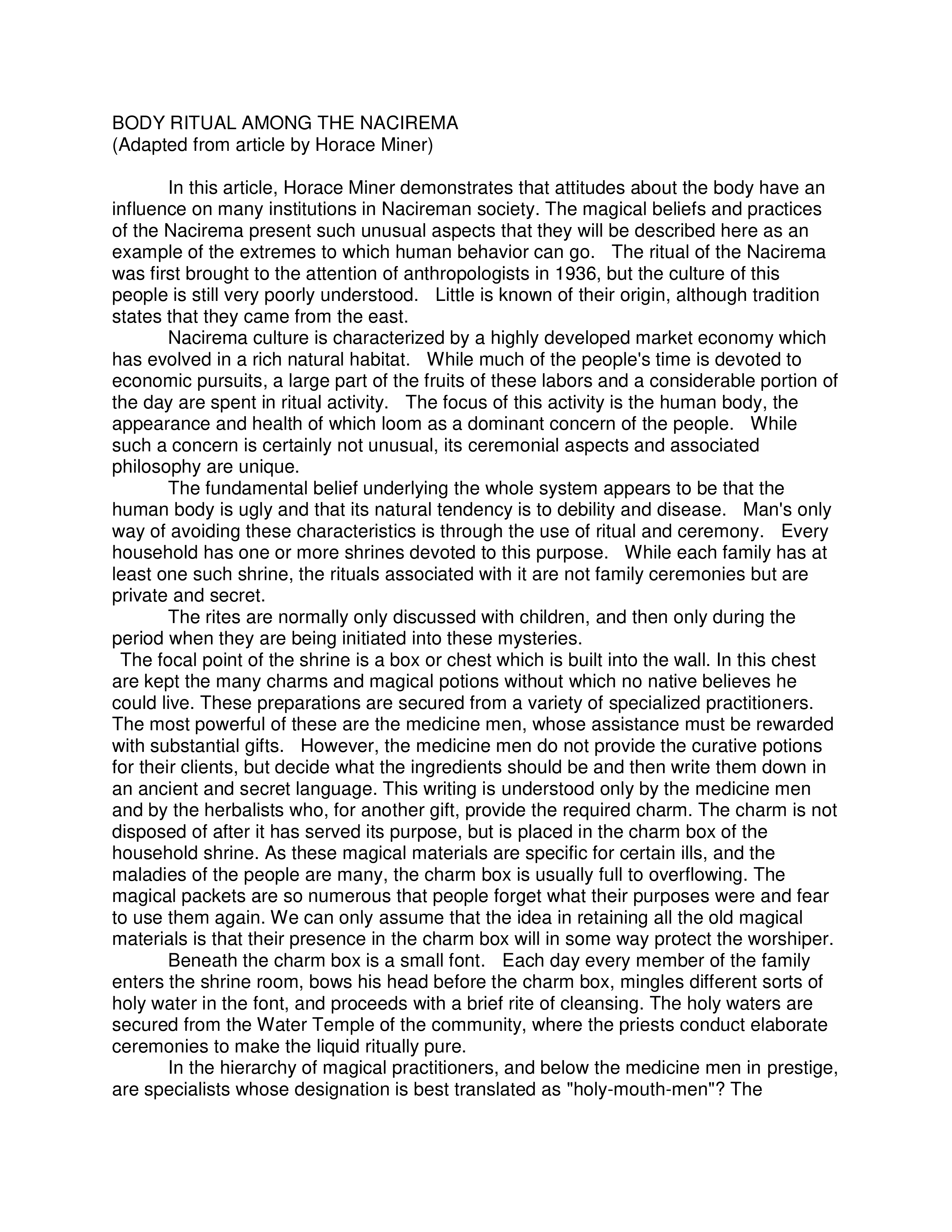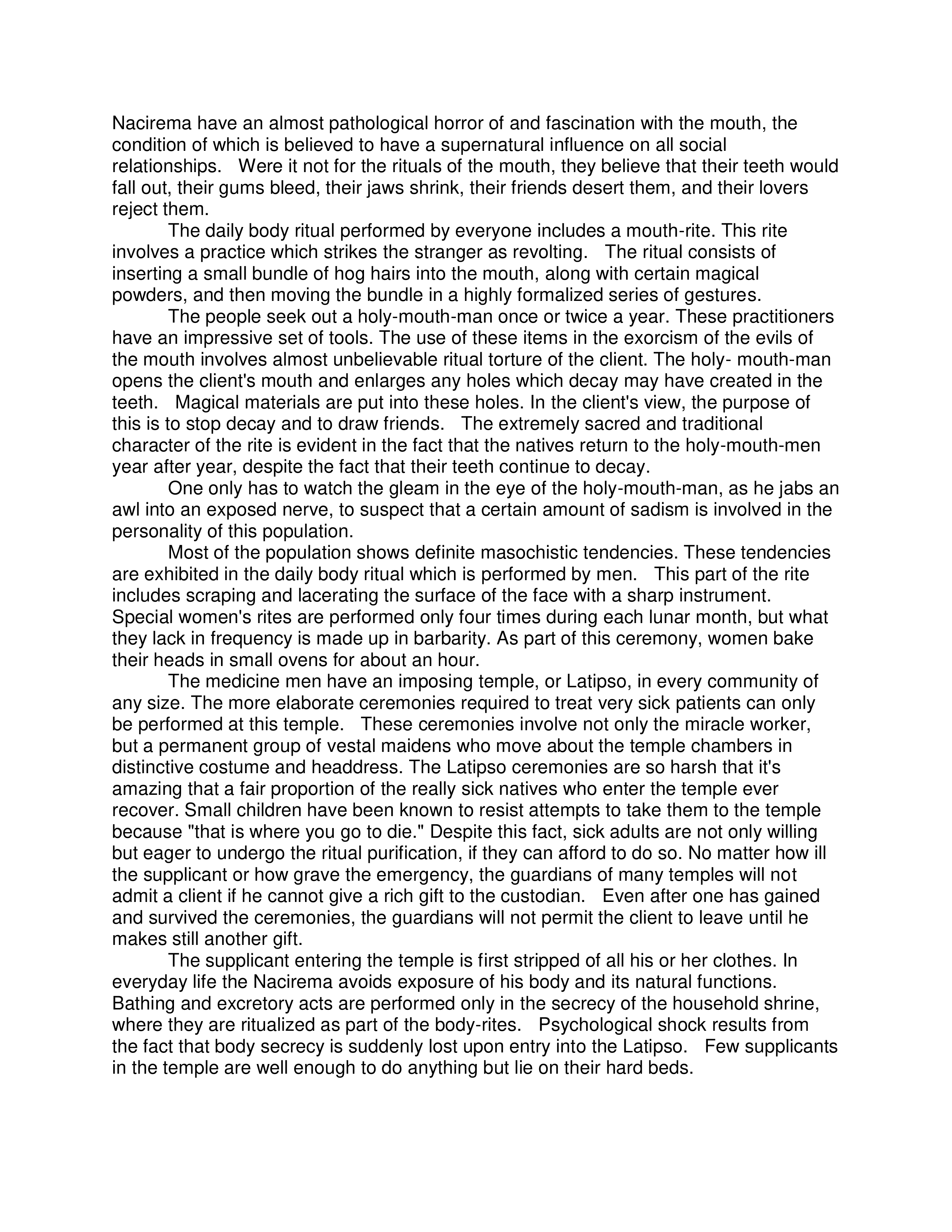 Body Ritual Among the Nacirema